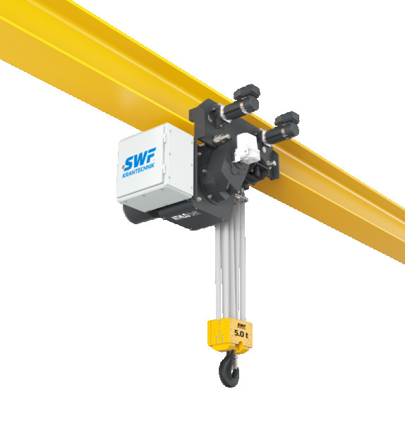 Sistema de içamento com trole motorizado para pontes rolantes duplaviga. Suporta cargas de até 40 toneladas e elevações de até 36 metros. Recomendado para processos produtivos intensivos e operações contínuas com alto desempenho. A talha possui os seguintes itens de série: ✔ Talha e Trole elétrico; ✔ Sensor de cabo frouxo para elevação; ✔ Inversor de frequência na direção; ✔ Contator na elevação; ✔ Protetor térmico nos motores de elevação e direção; ✔ Resistores de frenagem na direção; ✔ Microvelocidade para posicionamento de cargas; ✔ Dispositivo de sobrecarga; ✔ Fim de curso na elevação e direção; ✔ Monitoramento de carga com Load-Master²; ✔ Batentes mecânicos na direção.